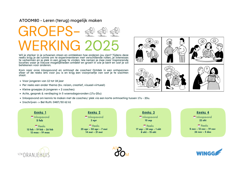- Je kan jongeren inschrijven door een telefoontje naar Ruth: 0487/50 62 61.